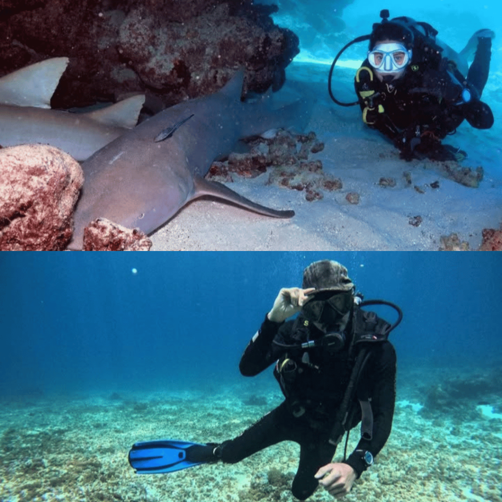 Somos Alba y Daniel, biólogos marinos e instructores de buceo. Llevamos años guiando a buceadores como tú a descubrir el mundo oculto bajo las aguas de España, Australia, Filipinas y otros rincones del mundo. Nuestra pasión por el océano nos ha llevado a explorar algunos de los fondos marinos más increíbles del planeta, compartiendo cada inmersión con quienes se atreven a mirar más allá de la superficie. Hemos instruido y acompañado a cientos de buceadores, ayudándoles no solo a sentirse seguros y cómodos bajo el agua, sino también a descubrir y comprender la vida marina que les rodea.